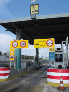 Εκπτωτικές διελεύσεις στις λωρίδες με εισπράκτορα για μοτοσικλέτες, φορτηγά και λεωφορεία πραγματοποιούνται με την Κάρτα Λογαριασμού.
