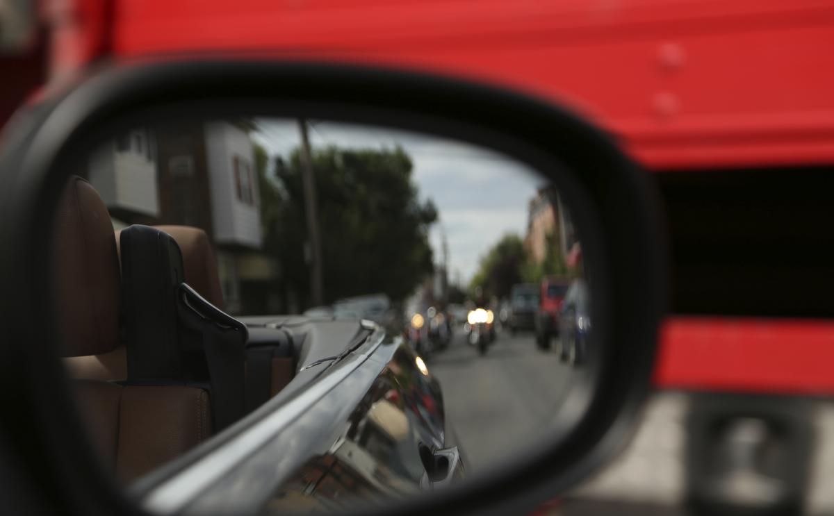 • Check carefully every time you make a turn. Especially when your field of vision is obstructed by stationary trucks or other vehicles.