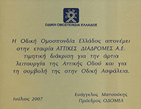 2007 | ΣΥΜΒΟΛΗ ΣΤΗΝ ΟΔΙΚΗ ΑΣΦΑΛΕΙΑ / ΒΡΑΒΕΙΟ ΟΔΙΚΗΣ ΟΜΟΣΠΟΝΔΙΑΣ ΕΛΛΑΔΟΣ
