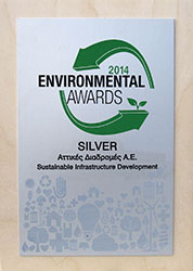 Στην εταιρεία λειτουργίας και συντήρησης της Αττικής Οδού, «Αττικές Διαδρομές Α.Ε.», απονεμήθηκε Silver Award στην κατηγορία «Sustainable Infrastructure Development», στο πλαίσιο της διοργάνωσης ENVIRONMENTAL AWARDS, που θεσμοθέτησε η εταιρεία Boussias Communications και το Plant Management. Η «Αττικές Διαδρομές Α.Ε.» βραβεύθηκε για τις βέλτιστες πρακτικές που εφαρμόζει για την περιβαλλοντική προστασία, στην κατεύθυνση της εναρμόνισης της λειτουργίας του αυτοκινητόδρομου με το φυσικό περιβάλλον.