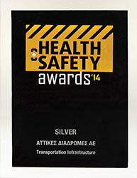Η εταιρεία λειτουργίας και συντήρησης της Αττικής Οδού, «Αττικές Διαδρομές Α.Ε.», βραβεύθηκε στον διαγωνισμό Health & Safety Awards 2014, που διοργανώθηκε υπό την αιγίδα του ΣΕΒ και με την υποστήριξη του Ελληνικού Ινστιτούτου Υγιεινής και Ασφάλειας της Εργασίας (ΕΛ.ΙΝ.Υ.Α.Ε.). Η εταιρεία τιμήθηκε με Silver Award στην κατηγορία «Μεταφορές & Υποδομές Μεταφορών». Η διάκριση επιβραβεύει την «Αττικές Διαδρομές Α.Ε.» για την εφαρμογή συντονισμένης και πιστοποιημένης στρατηγικής για ελαχιστοποίηση των εργατικών ατυχημάτων, καθώς και συμμετοχή, ενημέρωση & συνεχή εκπαίδευση του ανθρώπινου δυναμικού σε θέματα υγείας και ασφάλειας εργασίας και προστασίας περιβάλλοντος.